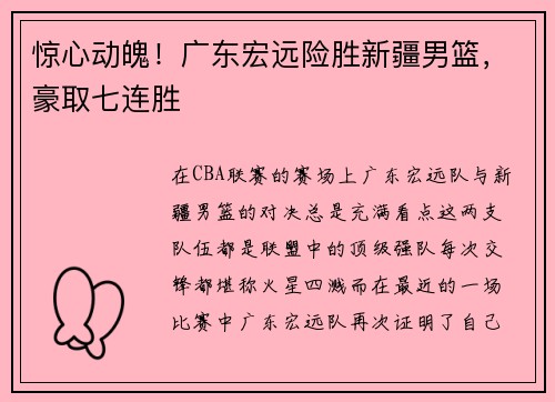 在CBA联赛的赛场上,广东宏远队与新疆男篮的对决总是充满看点。这两支队伍都是联盟中的顶级强队,每次交锋都堪称火星四溅。而在最近的一场比赛中,广东宏远队再次证明了自己为何是国内篮坛的劲旅。他们以109比106险胜新疆男篮,成功取得了七连胜的傲人战绩。