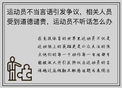 运动员不当言语引发的争议不仅是一个简单的言论问题,而是涉及到社会心理、文化价值观和职业规范等多个层面的复杂现象。在处理这一问题时,我们需要从多个角度入手,包括加强运动员的道德教育、完善行为规范体系、提高公众的理性认知等。只有通过多方努力,才能构建一个更加健康和理性的体育环境,推动体育行业的可持续发展。