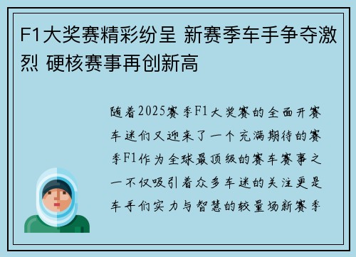 随着2025赛季F1大奖赛的全面开赛,车迷们又迎来了一个充满期待的赛季。F1作为全球最顶级的赛车赛事之一,不仅吸引着众多车迷的关注,更是车手们实力与智慧的较量场。新赛季的车手争夺可谓十分激烈,各支车队之间的技术创新、战术布局也呈现出前所未有的紧张态势。随着赛事进程的推进,硬核赛事再创新高的表现也成为了车迷和媒体热议的话题。本文将从四个方面详细阐述2025赛季F1大奖赛的精彩之处:首先,从车手之间的激烈竞争谈起;接着分析赛事背后技术和战略的变化;然后探讨F1在全球范围的影响力和赛事文化;最后,回顾F1新赛季的成绩和未来展望。通过这些方面的探讨,可以看出F1大奖赛作为一项全球性赛事的无穷魅力以及其在新赛季中的全新突破。